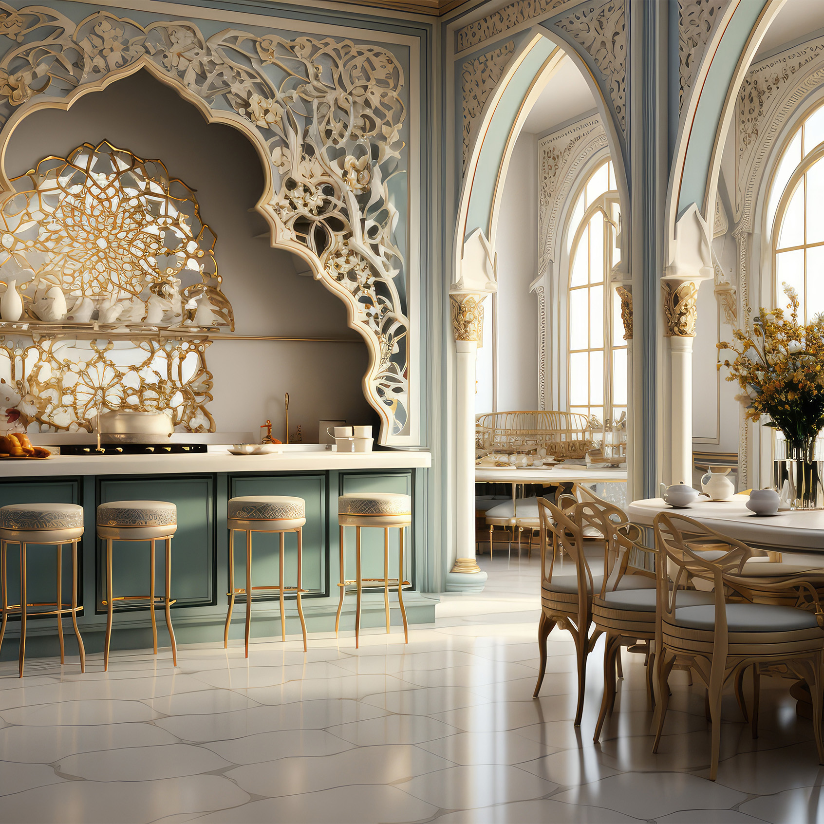 Les motifs géométriques sont une caractéristique clé de la décoration de cuisine orientale. Des motifs en mosaïque aux carreaux en zellige, ces motifs apportent une touche d’élégance à votre cuisine. Nos experts en décoration peuvent vous aider à choisir les motifs qui conviennent le mieux à votre cuisine pour créer une ambiance authentique et élégante.